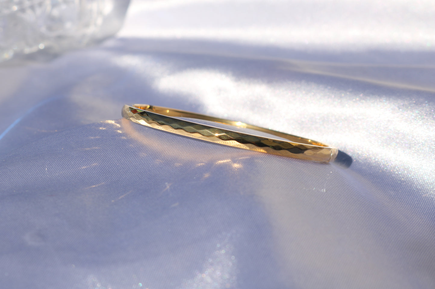 Radiate elegance with our Sunlit Narrow Bangle, a breathtaking piece that captures the beauty of light in every facet. Designed to dazzle, this bangle allows light to hit each geometric facet, creating a stunning reflection that enhances its allure.